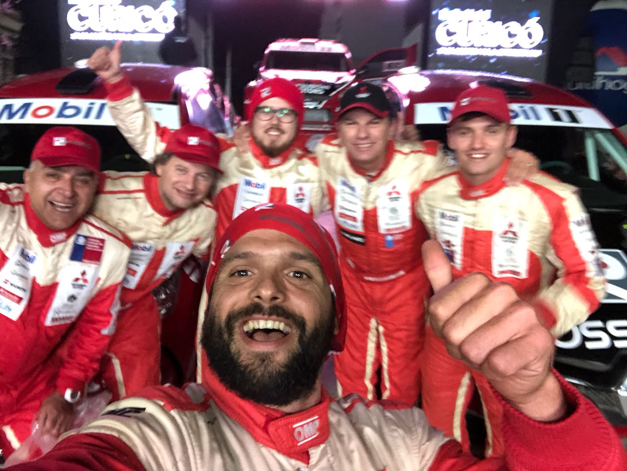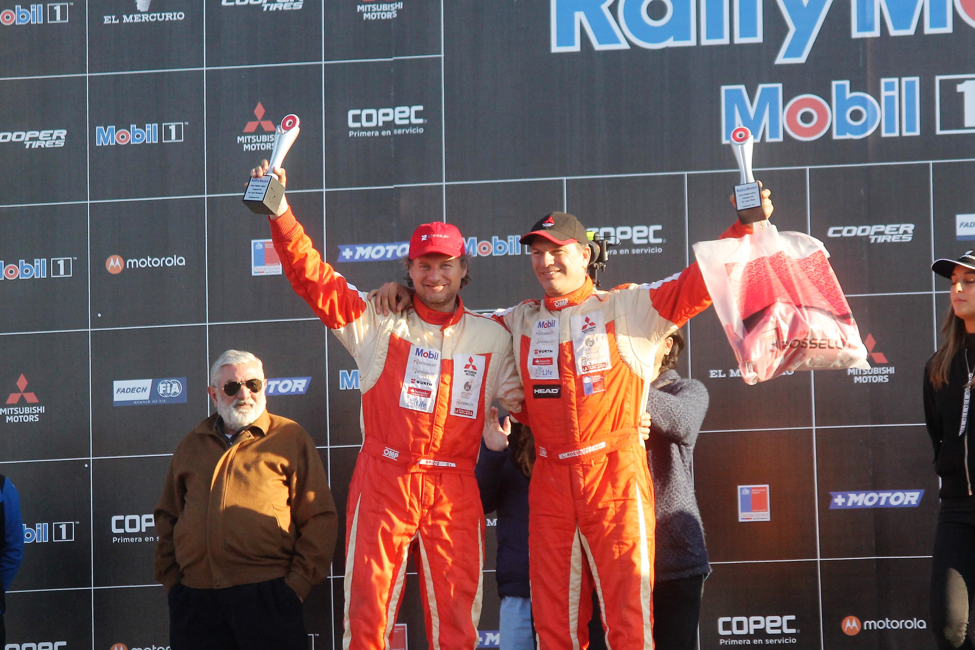 Hoy no hubo freno para expresar la alegría por las actuaciones de los pilotos del equipo Mitsubishi-Rosselot por la brillante actuación que efectuaron hoy Luis Ignacio y Emilio Rosselot al concluir el “Rally de Curicó”, la quinta techa del torneo nacional de la especialidad.